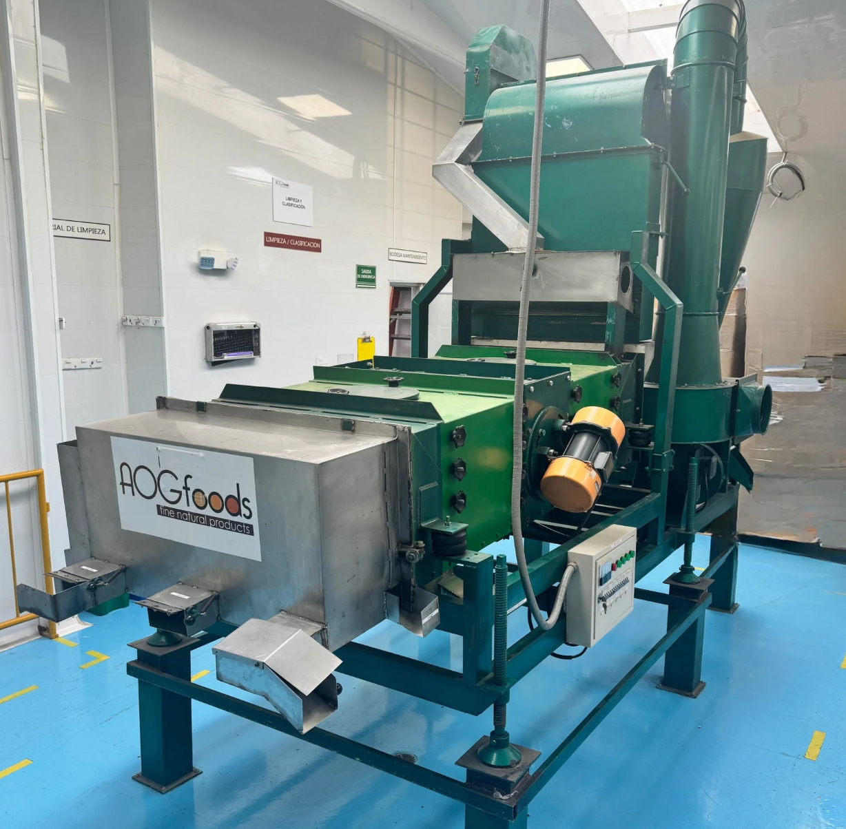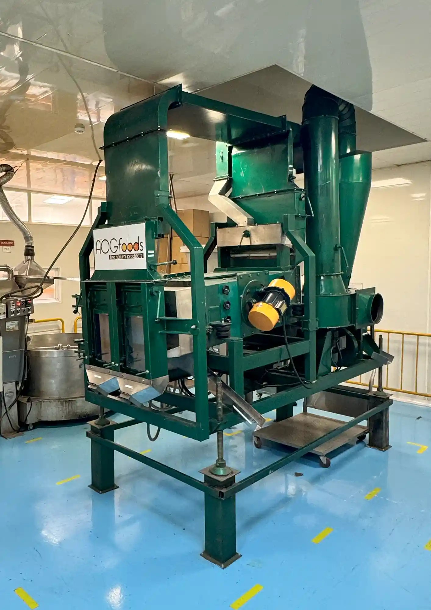Cleans and classifies cocoa beans by size, removing impurities such as metals, stones, wood, and sticks, ensuring a higher quality product for chocolate production. Main parts are made of stainless steel.